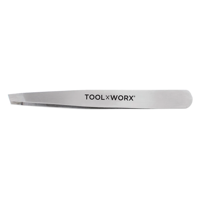Tool Worx 3 3/4" POWER GRIP SLANTED TWEEZER MATTE SILVER